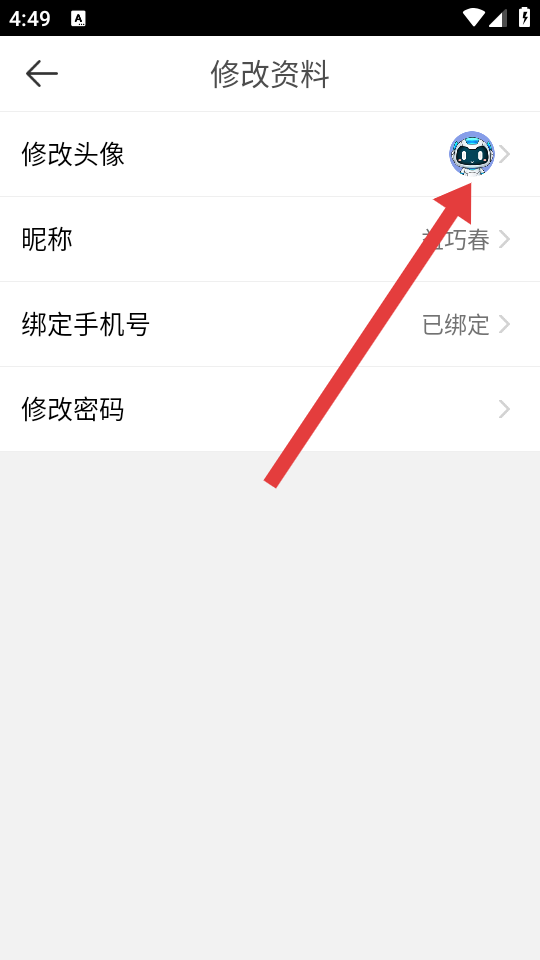 3、在修改資料頁面,點(diǎn)擊修改頭像選項(xiàng),進(jìn)入頭像圖片選擇界面。