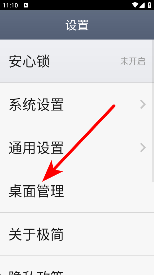 2、在設(shè)置頁面中,點擊桌面管理選項,進入相關(guān)界面。