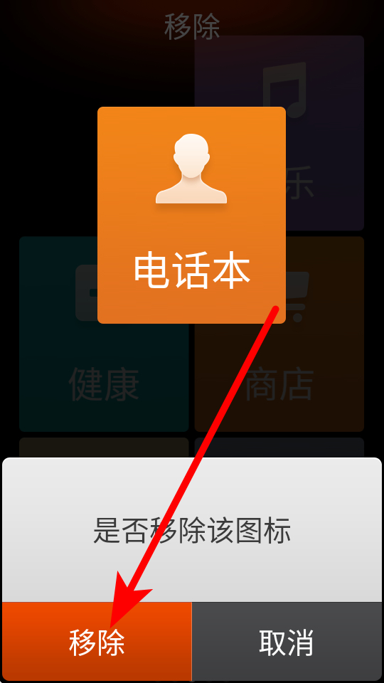 3、回到桌面長按要移除的軟件圖標(biāo),此時會出現(xiàn)移除提示。