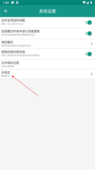 3、在其他設(shè)置界面,點(diǎn)擊多語言選項(xiàng)。