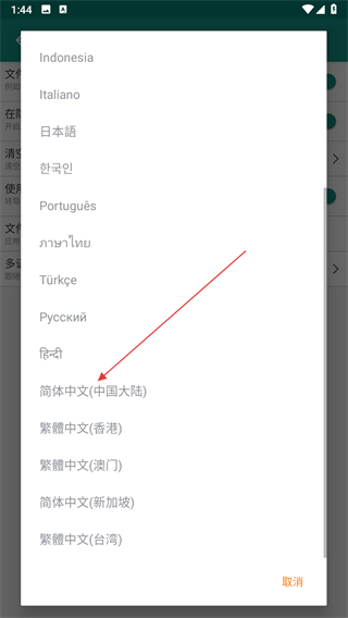 4、在語言選擇列表中,點(diǎn)擊簡體中文(中國大陸)。