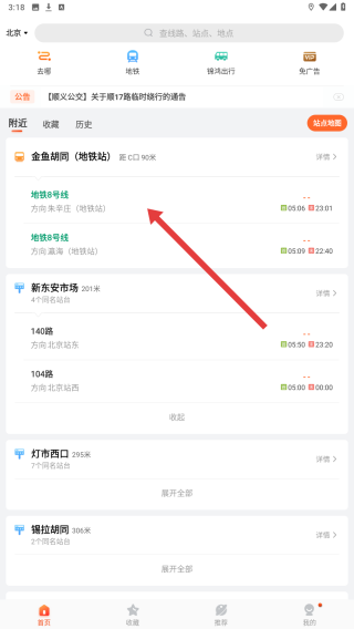 1、在應用的地鐵線路列表里,選定目標線路如地鐵相關線路,進入其詳情頁面,為后續(xù)收藏操作奠定基礎。
