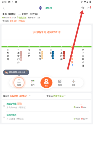2、進入地鐵線路詳情界面后,點擊右上角的星形收藏圖標,喚起收藏分類的選擇彈窗。