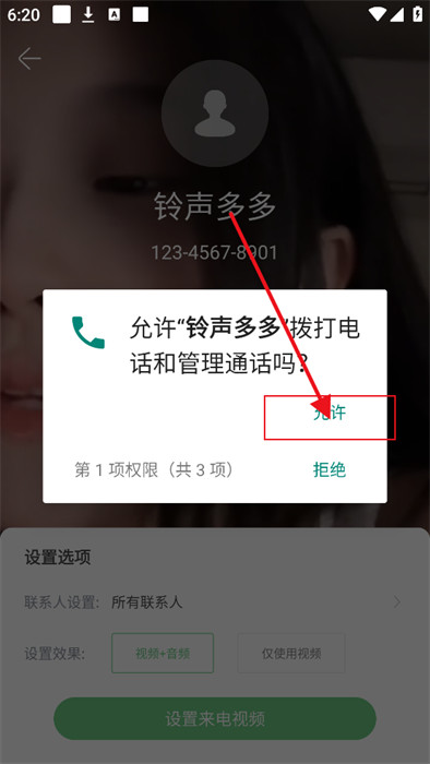 5、最后,只需要獲取到設(shè)備的權(quán)限之后,就能順利完成來電視頻的設(shè)置。