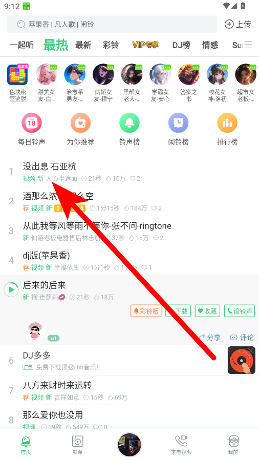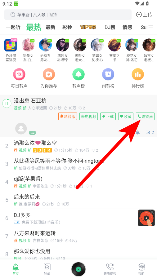 1、在鈴聲多多首頁,點擊想要下載的鈴聲,進(jìn)入鈴聲播放頁面。
