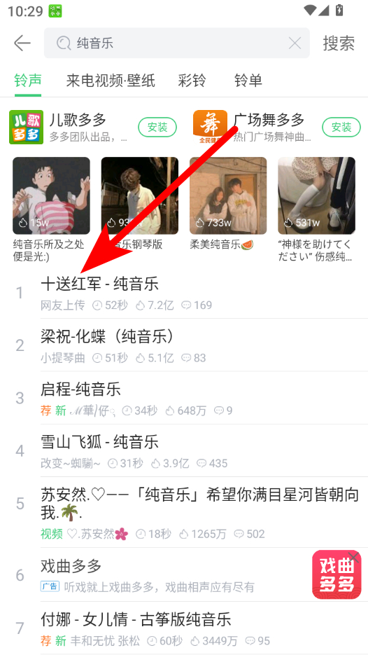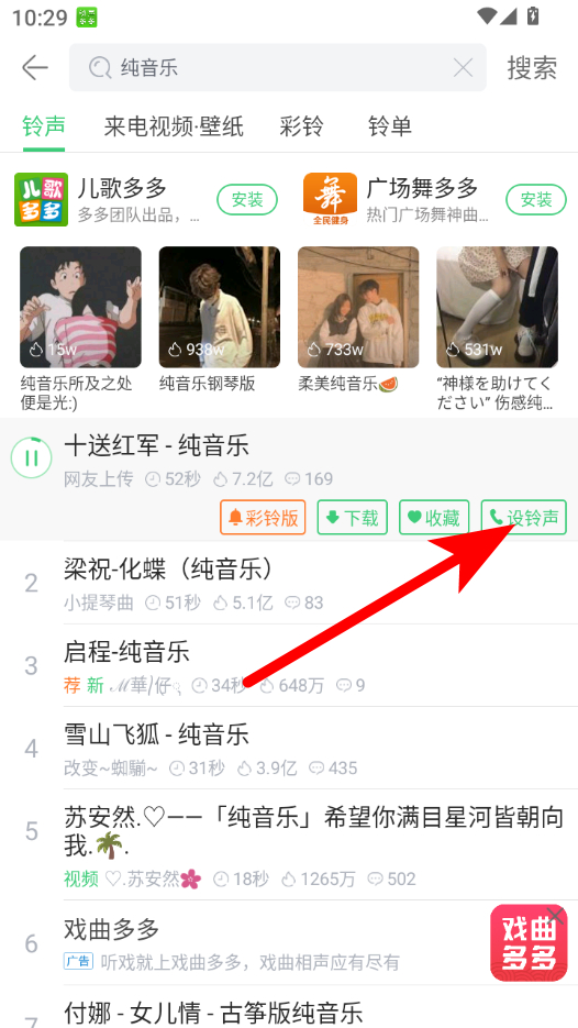 2、在搜索結(jié)果中,選擇想要設(shè)置的來電鈴聲,點擊進(jìn)入鈴聲詳情頁面。