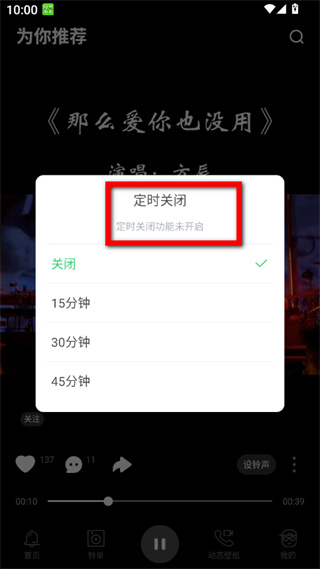 4、在定時設(shè)置界面,選擇15分鐘、30分鐘或45分鐘等時長,完成定時關(guān)閉音樂設(shè)置。