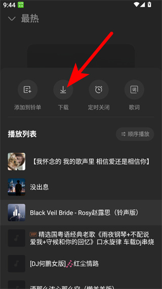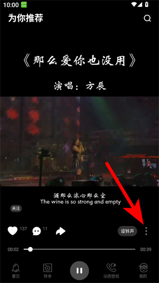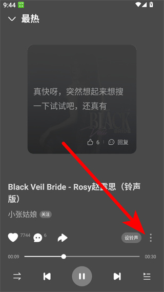 2、在鈴聲播放頁面,點擊右側(cè)三點按鈕,彈出功能菜單。