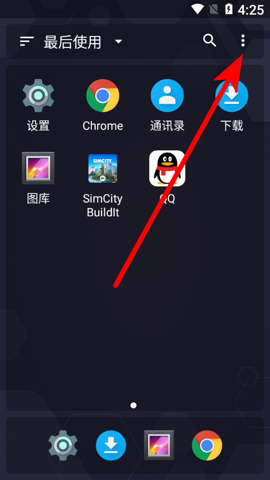 2、在應(yīng)用列表頁面,點(diǎn)擊右上角三點(diǎn)圖標(biāo),展開功能菜單。