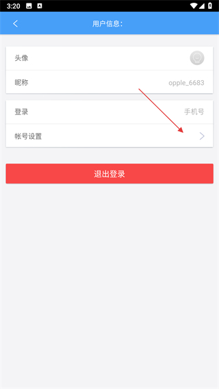 2、在用戶信息頁面,點(diǎn)擊帳號(hào)設(shè)置選項(xiàng)。