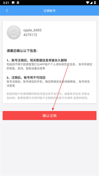 4、在注銷帳號(hào)確認(rèn)頁面,點(diǎn)擊確認(rèn)注銷按鈕。