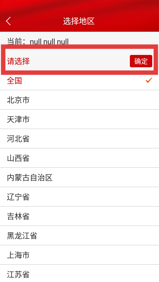 3、在選擇地區(qū)頁面,從地區(qū)列表中選擇你所在的地區(qū)并確定,完成考試地區(qū)的設(shè)置,就可以查看并參與對應(yīng)地區(qū)的考試。