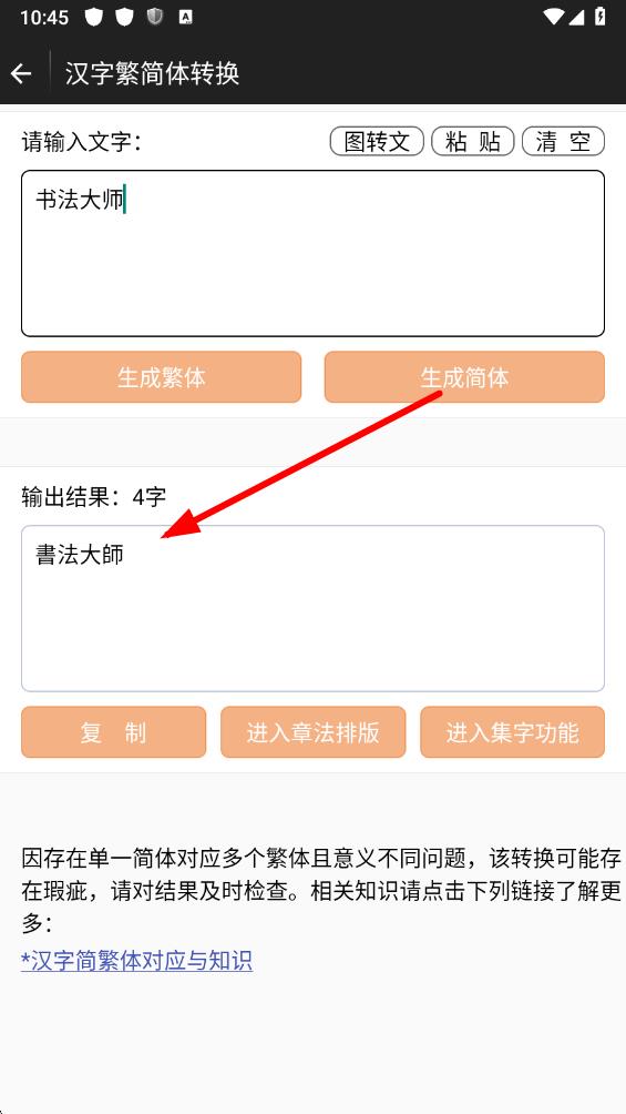 4、轉(zhuǎn)換完成后,即可在下方輸出結(jié)果框中查看轉(zhuǎn)換后的繁體字內(nèi)容。