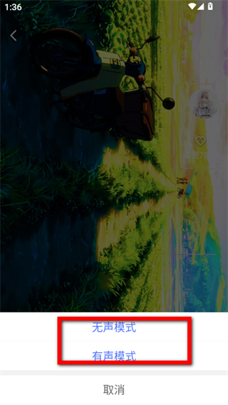 4、在模式選擇菜單中,選擇無(wú)聲模式或有聲模式,完成壁紙?jiān)O(shè)置操作。