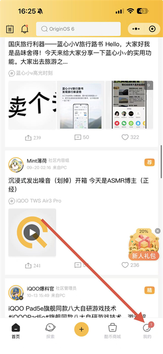 1、打開(kāi)OPPO社區(qū)應(yīng)用,點(diǎn)擊底部導(dǎo)航欄最右側(cè)的我的,進(jìn)入個(gè)人頁(yè)面。