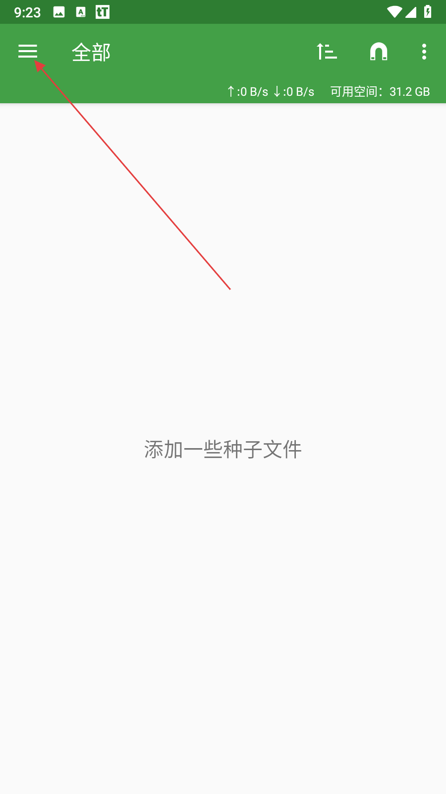 1、打開tTorrent應(yīng)用,點擊界面左上角三條橫線的菜單按鈕。
