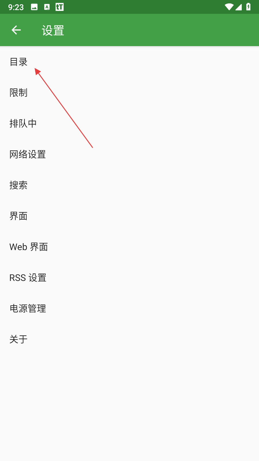 3、在設(shè)置界面中找到目錄選項,點擊該選項進入目錄設(shè)置頁面,查看當(dāng)前的下載路徑。