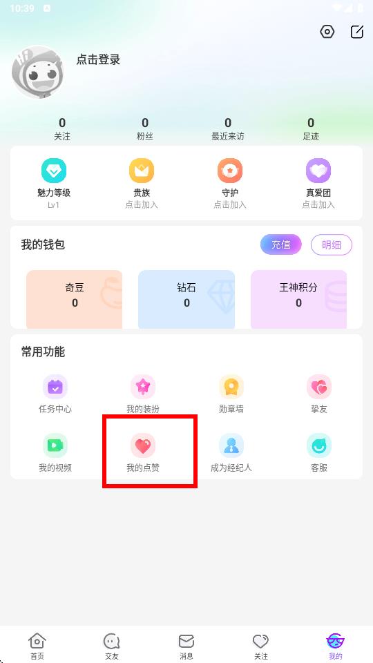 2、在個(gè)人界面的常用功能區(qū)域,找到并點(diǎn)擊我的點(diǎn)贊按鍵。