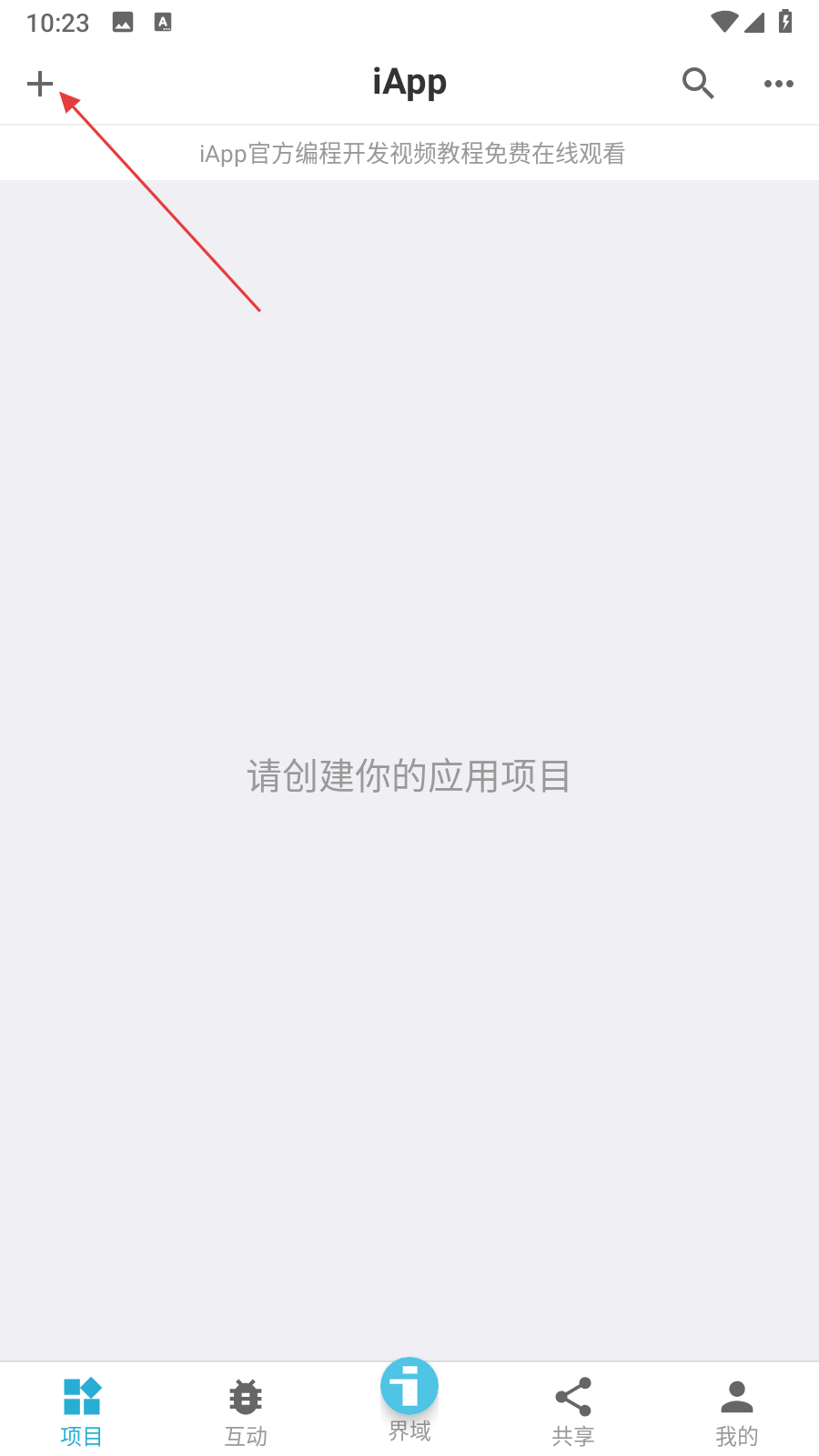 1、打開iApp應(yīng)用,點(diǎn)擊左上角+號(hào)按鈕,進(jìn)入創(chuàng)建應(yīng)用頁(yè)面。