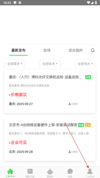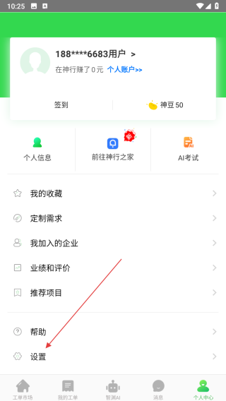 1、打開神行工程師APP,點擊底部導航欄的個人中心,進入個人中心頁面。