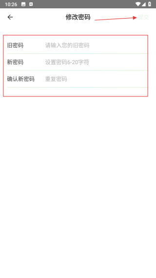 4、在修改密碼界面,依次輸入舊密碼、新密碼、確認新密碼,輸入完成后點擊提交。
