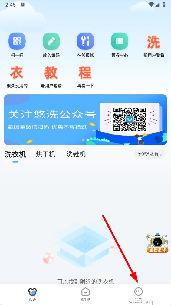 1、在悠洗app首頁,點擊右下角我的,進入個人頁面。