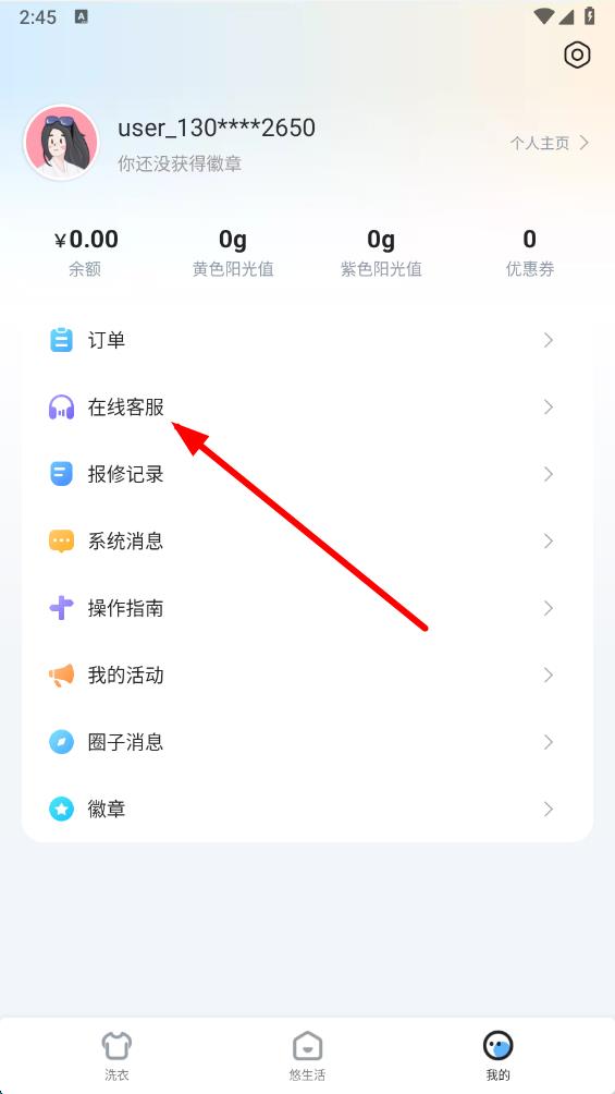 2、在個人頁面里,找到并點擊在線客服選項,進入在線客服對話界面。