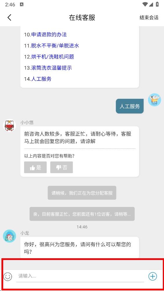 4、點擊后等待系統(tǒng)分配客服,與人工客服取得聯(lián)系后,在輸入框輸入問題并發(fā)送,即可進行溝通咨詢。
