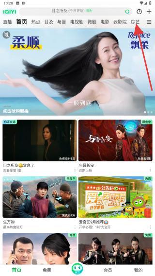 1、打開APP并進(jìn)入到首頁內(nèi),在首頁頂部導(dǎo)航欄中點(diǎn)擊綜藝。