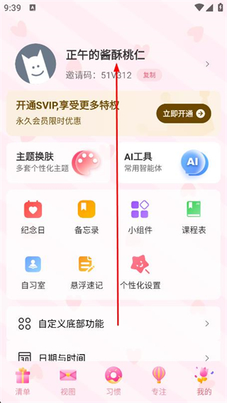2、進入我的頁面后,找到并點擊用戶名區(qū)域。