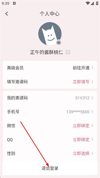 3、在個人中心頁面,點擊底部的退出登錄按鈕。