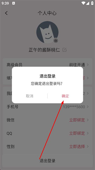 4、在彈出的窗口中,點擊確定按鈕,即可退出登錄。