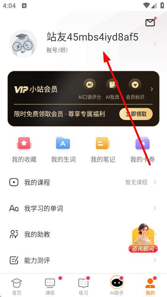 1、在小站雅思的首頁,需要點擊底部我的,進入個人的頁面。