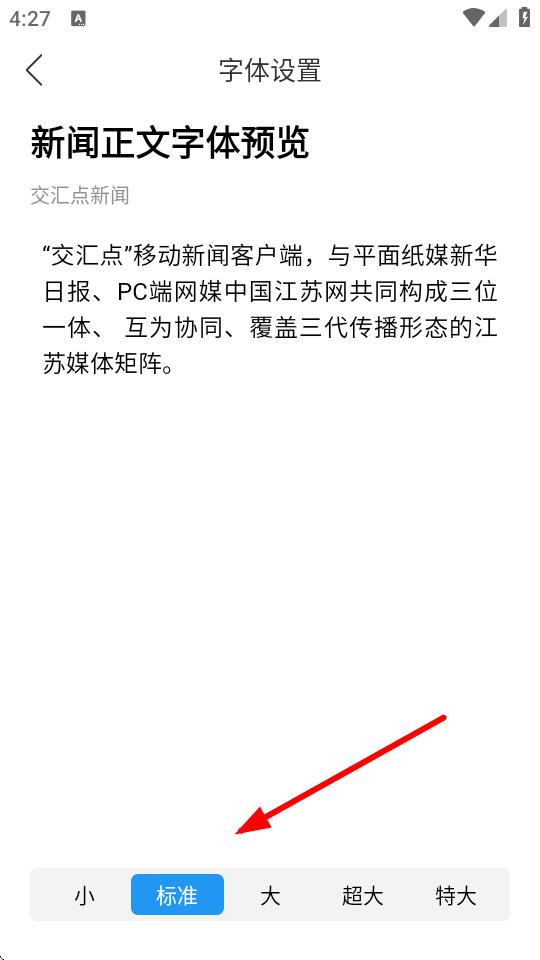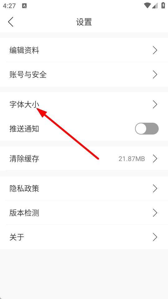 3、在設置的界面,點擊字體大小按鈕,進入字體設置的頁面。