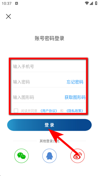 3、選擇賬號密碼登錄方式,輸入信息,勾選同意后,點擊登錄按鈕即可完成。