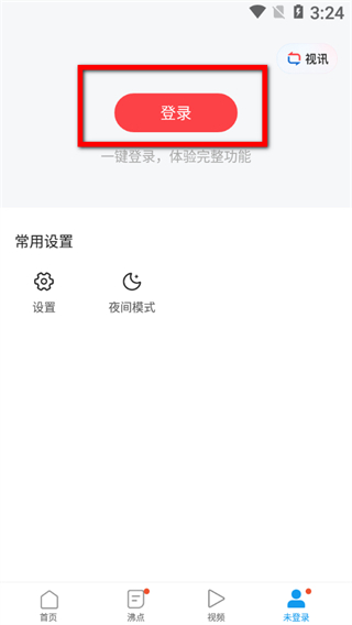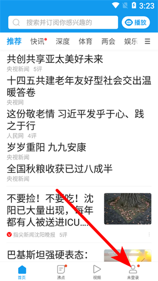 1、在新聞資訊app頁面,點(diǎn)擊未登錄按鈕,進(jìn)入頁面。