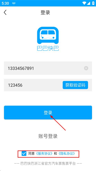 4、勾選同意服務(wù)協(xié)議和隱私協(xié)議的選項(xiàng),點(diǎn)擊頁面中的登錄按鈕完成登錄操作。