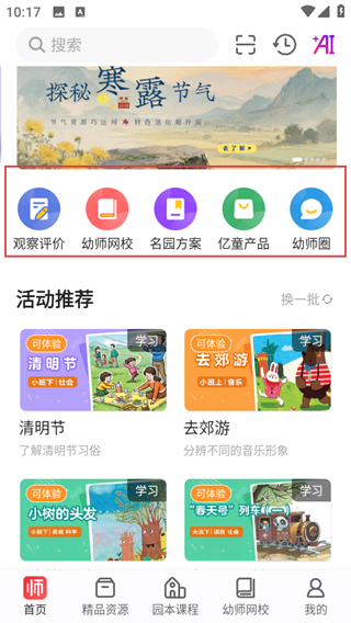 2、推薦各類(lèi)活動(dòng)資源,如清明節(jié)、去郊游等主題活動(dòng),涵蓋不同領(lǐng)域,助力幼師開(kāi)展豐富的教學(xué)活動(dòng)。