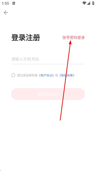 3、在登錄注冊(cè)頁(yè)面,點(diǎn)擊下方的賬號(hào)密碼登錄選項(xiàng)。