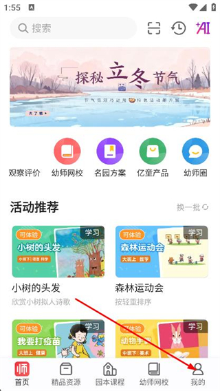 1、打開(kāi)億童幼師網(wǎng)校APP,點(diǎn)擊底部導(dǎo)航欄我的選項(xiàng)。