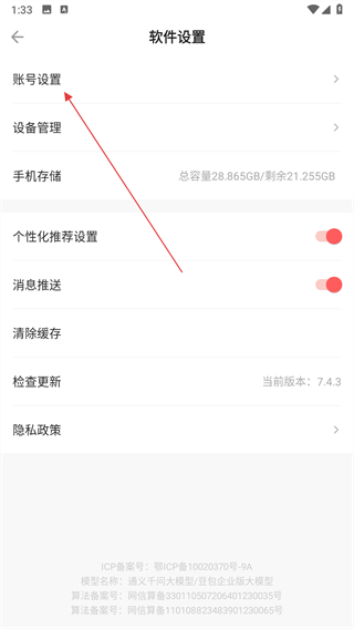2、在軟件設(shè)置頁(yè)面點(diǎn)擊賬號(hào)設(shè)置選項(xiàng),進(jìn)入賬號(hào)設(shè)置頁(yè)面。