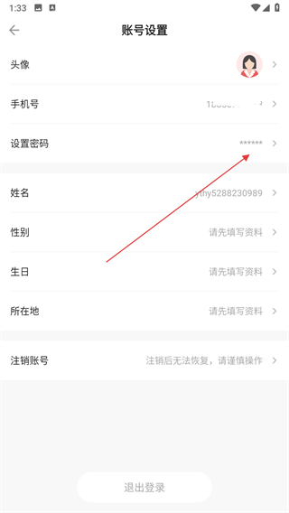 3、在賬號(hào)設(shè)置頁(yè)面點(diǎn)擊設(shè)置密碼選項(xiàng),進(jìn)入設(shè)置密碼頁(yè)面。