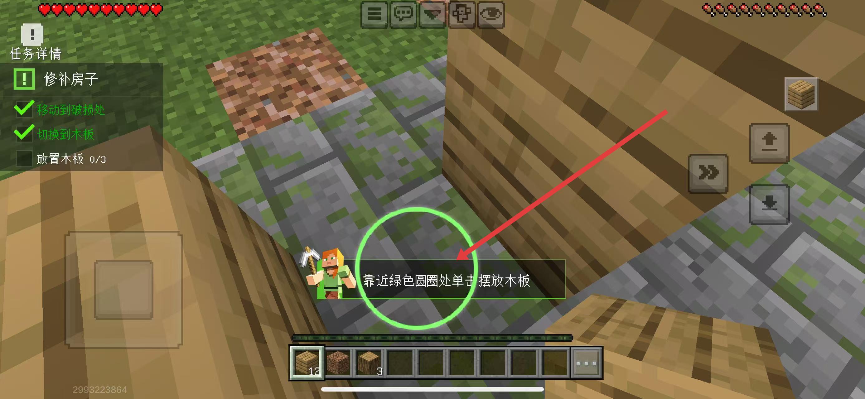3、靠近綠色圓圈區(qū)域,點(diǎn)擊屏幕擺放木板,完成3次放置,即可修好房子。