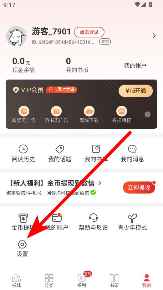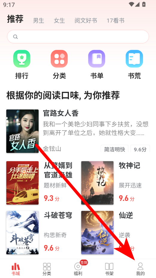 1、在追書神器主界面,點擊右下角我的選項,進入個人中心界面。