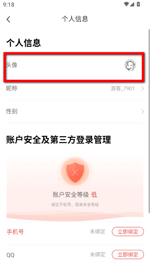 4、在個人信息界面,點擊頭像選項,即可進行頭像更換操作。