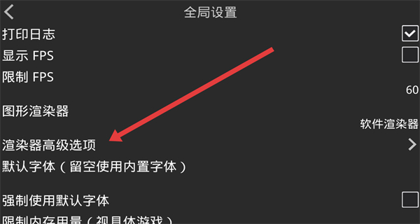 3、全局設(shè)置頁面點擊“渲染器高級選項”,進入軟件渲染器選項頁面。
