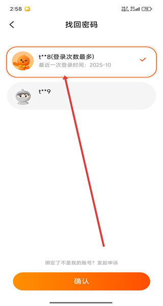 3、可以點擊選擇要找回密碼的賬號,進行找回操作。