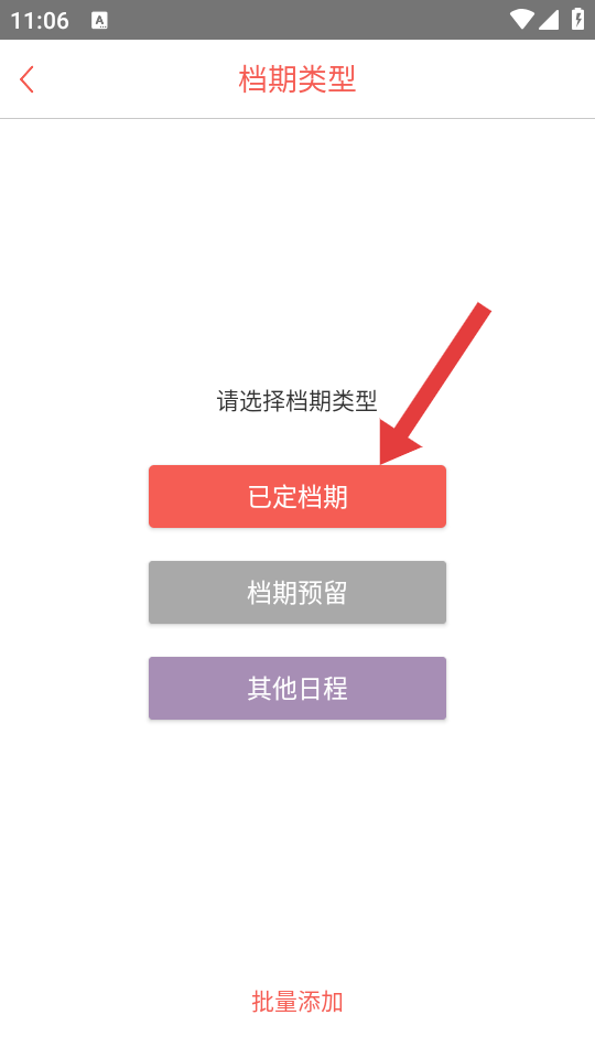 3、在檔期類型選擇頁面,點(diǎn)擊已定檔期選項(xiàng),進(jìn)入添加已定檔期頁面。