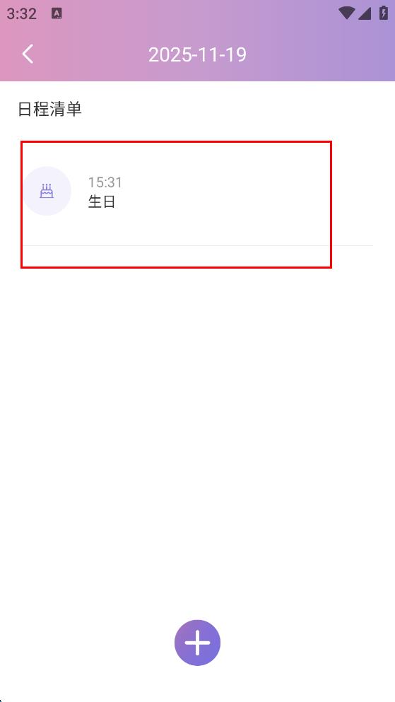 1、打開日程管理軟件,點擊頁面下方紫色“+”按鈕。