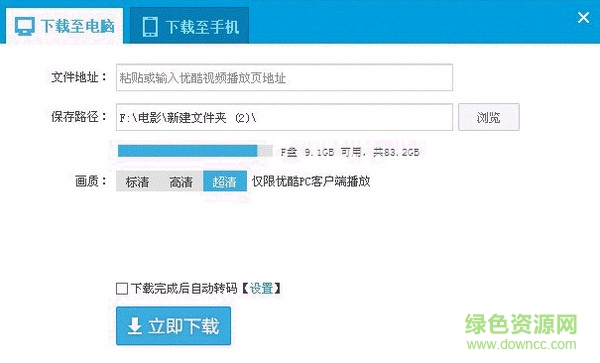 溫馨提示:當(dāng)片源不支持您選擇的畫質(zhì)時(shí),優(yōu)酷客戶端自動(dòng)為您匹配清晰度較高的片源進(jìn)行下載。